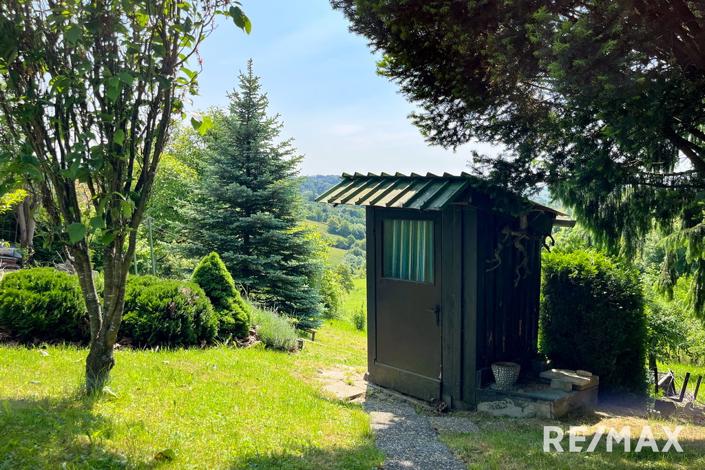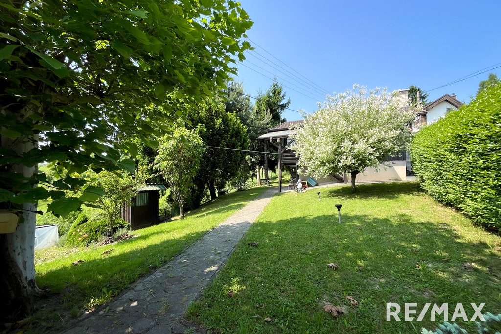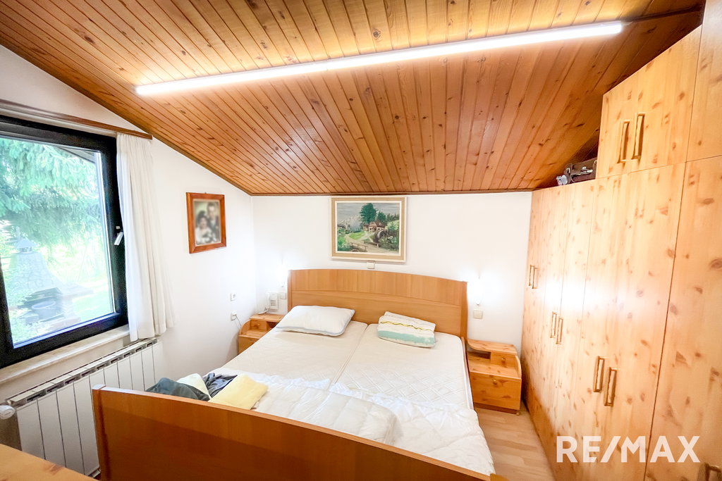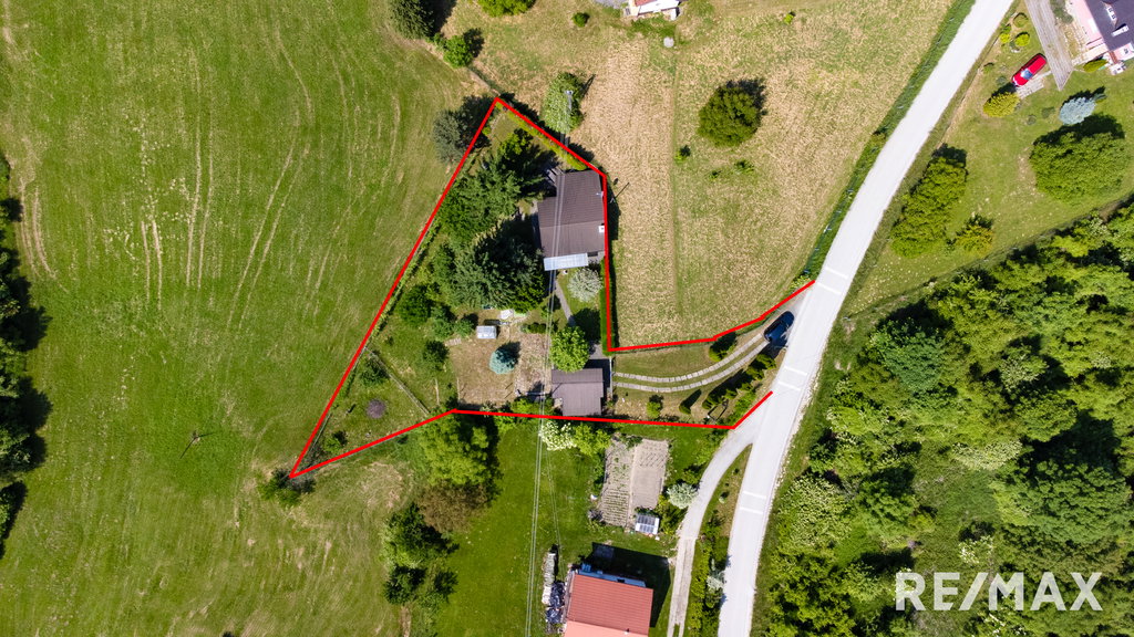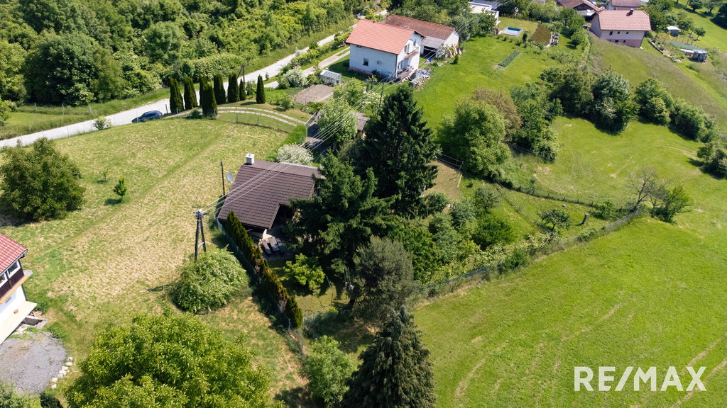 ZUNAJ: garaža, vrt, sadovnjak,, urejen dostop z lokalne ceste in urejen parking),