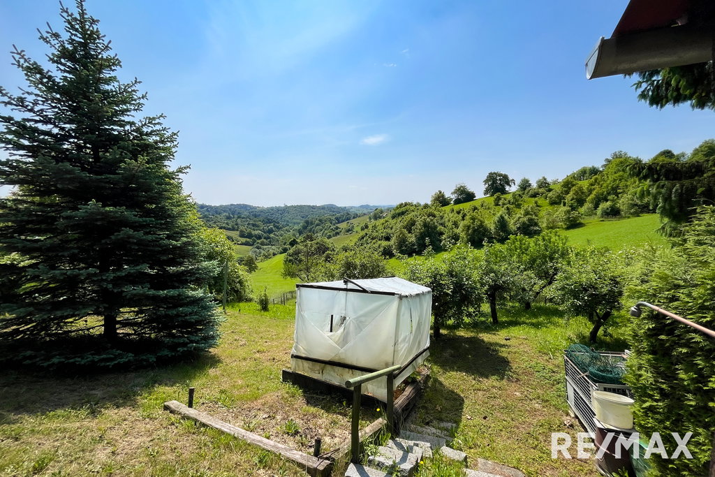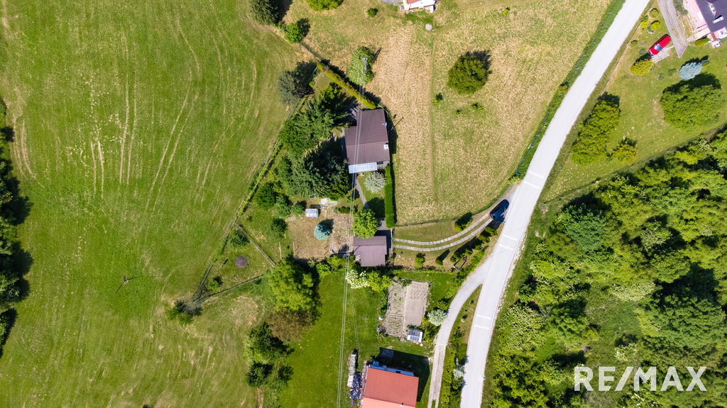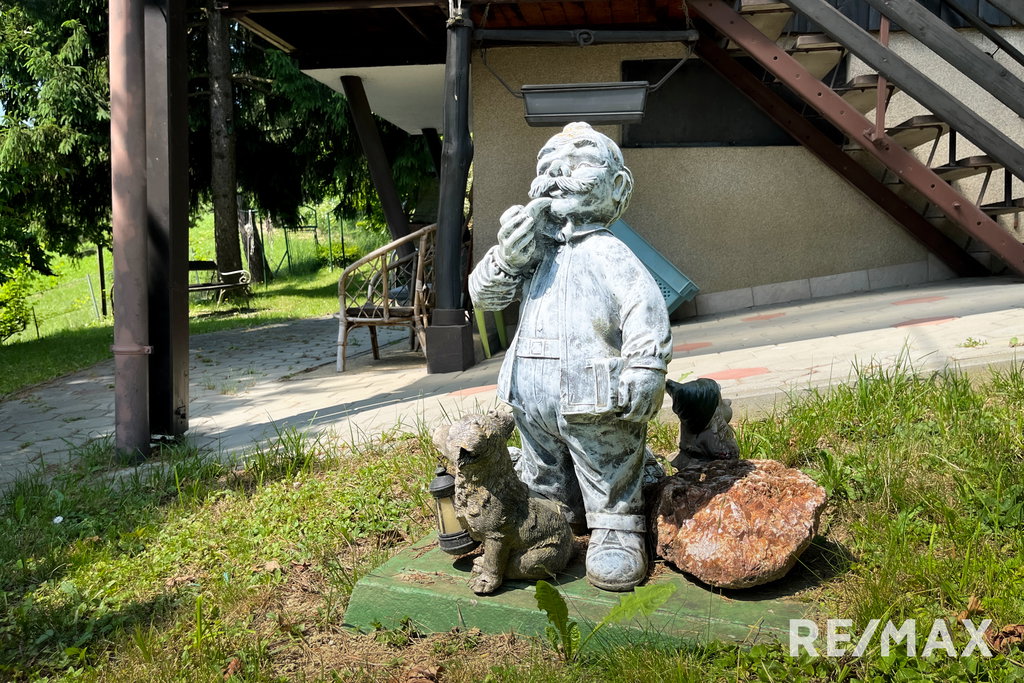 Celotno posestvo je sestavljeno iz glavnega objekta (letnik 1986 ) z 72,2 m2 neto tlorisne površine, od tega 44,4 m2 uporabne površine, in 18 m2 veliko kletjo. V neposredni bližini glavnega objekta stoji lesena garaža 25,5 m2 (povzeto po GURS) in boks za pse.. V garaži je dovolj prostora za parkiranje enega avtomobila in za shranjevanje vrtnega orodja.